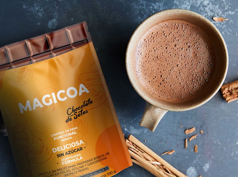 Magicoa , es una bebida a base de granos de cacao y setas Reishi. También contiene ingredientes adicionales que multiplican por diez la efectividad quemagrasas al acelerar el metabolismo de las grasas y los carbohidratos y favorecer la desintoxicación del hígado y los riñones.